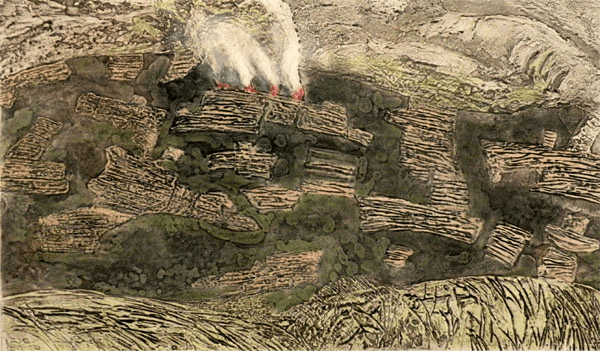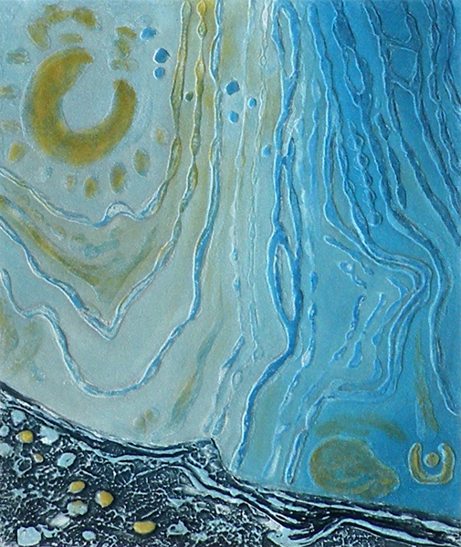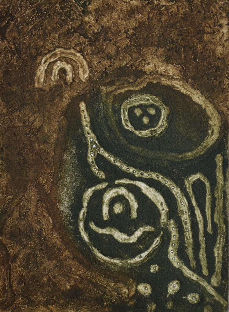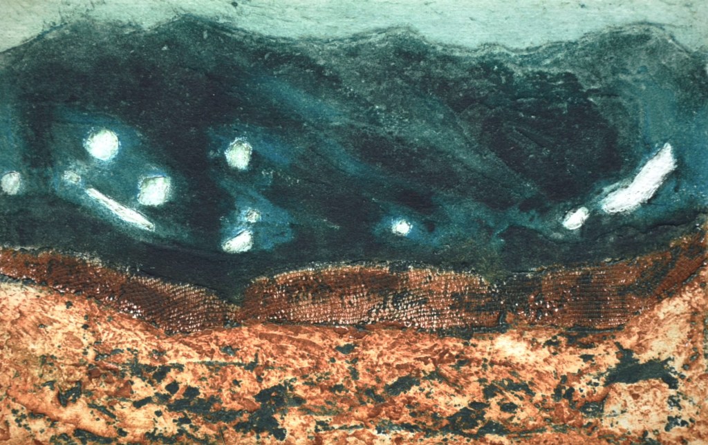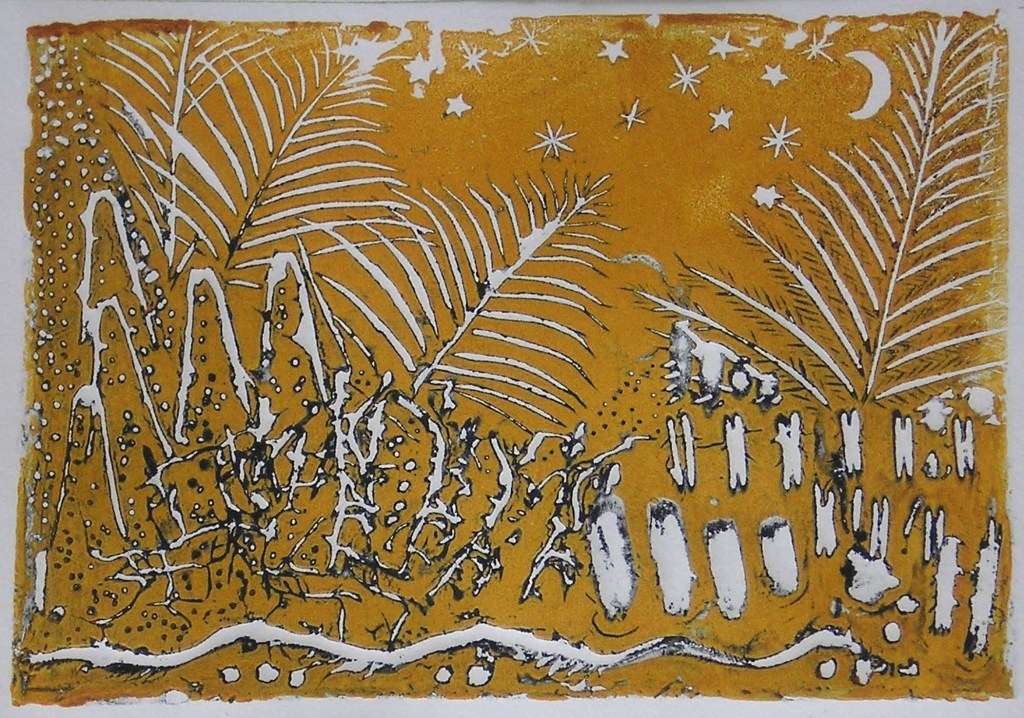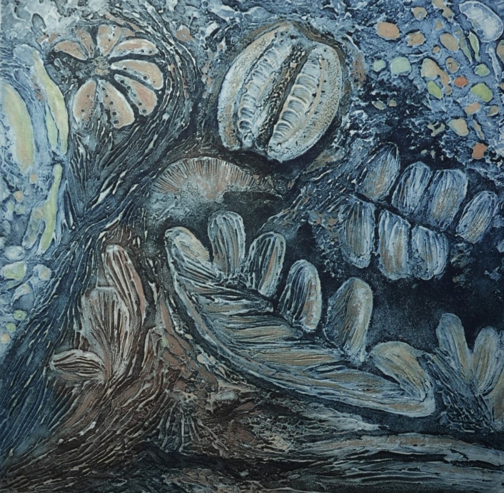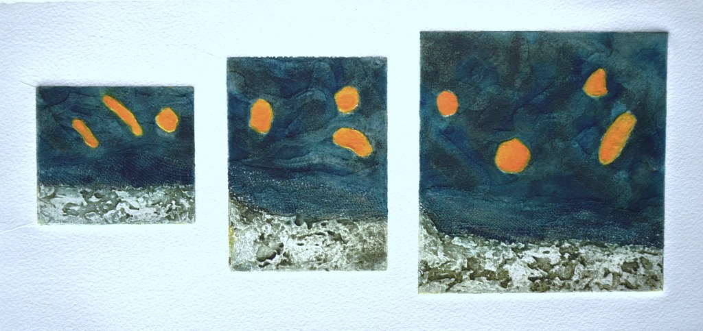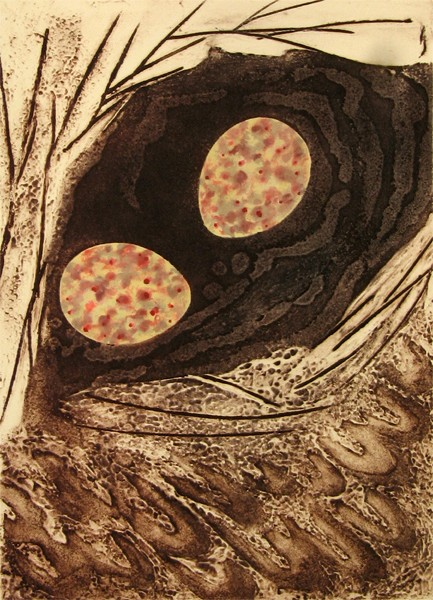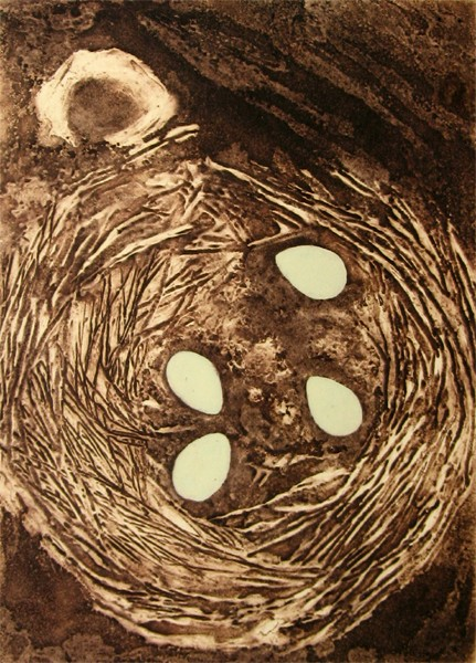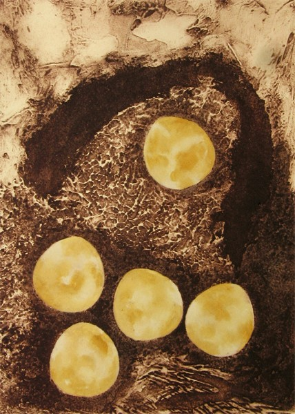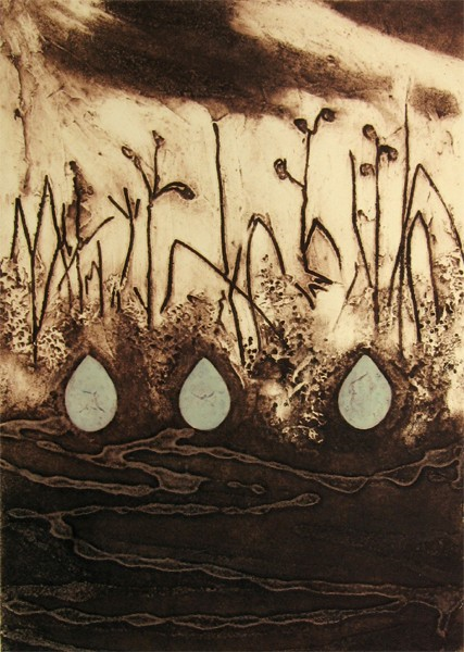 Timeline is a series of 6 collagraph prints depicting six species of birds’ eggs, together with a small box containing story cards. Eggs are a symbol for the potential of new life. Dates are a construct to chart human history. Non-human species, especially ‘wild’ ones, are rarely included in the narrative. Theirs is a parallel, largely unrecorded history. Regularly, and with increasing frequency, they disappear, unacknowledged and unmourned.