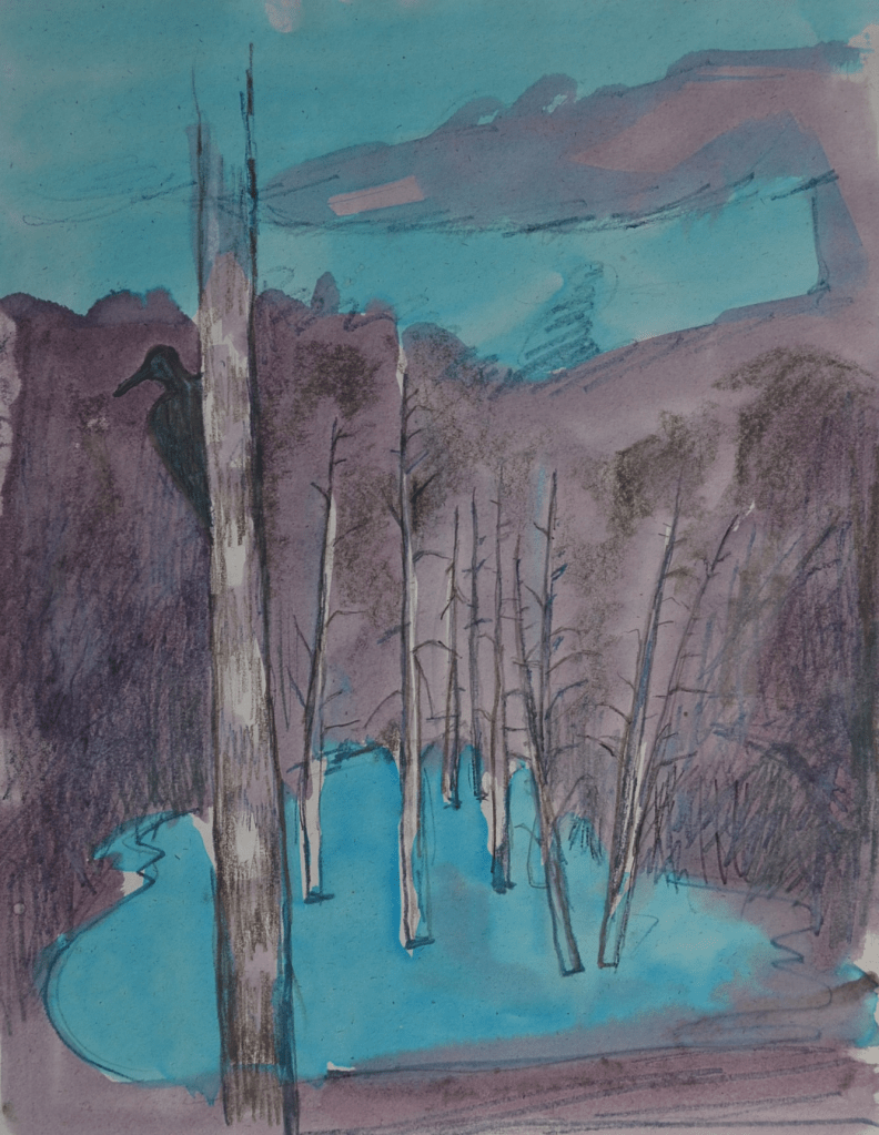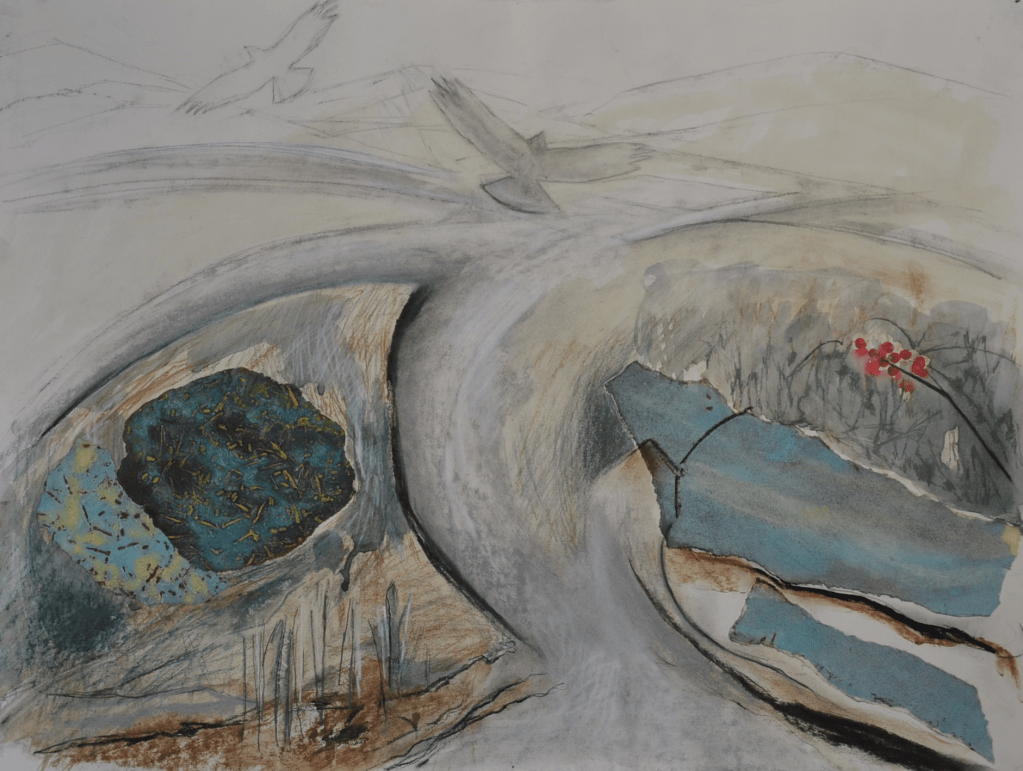 An artist residency at Vermont Studio Center gave me the opportunity to ‘map’ a small area of this beautiful green State. A series of walks, and a lot of birdwatching, produced sketches and collagraph prints.