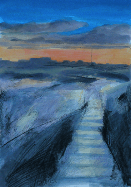 Durante la residencia de un artista en La Fragua en Belalcazar, mi proyecto era hacer observaciones de una duración de una hora al día, cada hora desplazándose hacia adelante cada día, para cubrir un periodo de veinte y cuatro horas. Estas observaciones horarias comenzaron de medianoche a una del mediodía y finalizar veintidós cuatro días después de las 23:00 hasta la medianoche, y se hicieron bocetos de escenas, ocurrencias y vida salvaje.